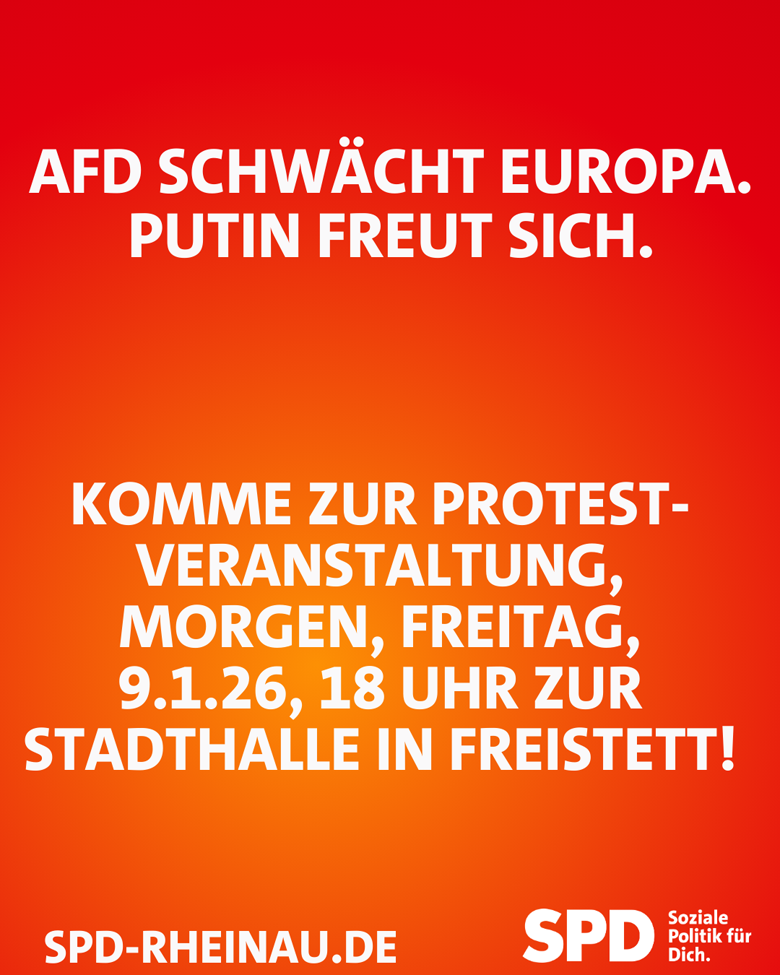Deshalb demonstrieren wir als SPD Rheinau gemeinsam mit dem Bündnis „Bunt statt Braun“ gegen die AfD, gegen Spaltung, gegen Europa-Feindlichkeit und gegen politische Lügen.
