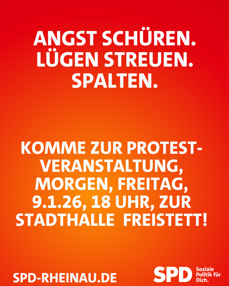 Deshalb demonstrieren wir als SPD Rheinau gemeinsam mit dem Bündnis „Bunt statt Braun“ gegen die AfD, gegen Spaltung, gegen Europa-Feindlichkeit und gegen politische Lügen.